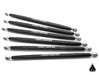 The Assault Industries turret style heavy duty radius rods for the Can-Am Maverick X3 are designed and manufactured in California using state-of-the-art machinery and aircraft grade materials. This kit retains OEM clearance but adds incredible strength and rigidity over the factory setup. Assault Industries radius rods are machined from 6061 T6 aluminum and hard anodized black with polished chromoly adjustable Heim joints. This stylish kit will look amazing while performing above and beyond OEM specifications! Note: These radius rods are Left/Right adjustable. Ensure that the jam nut is secured with tread locker, double check before each ride to make sure everything is tight! Package Contents Radius Rods Installation Hardware Installation Instructions