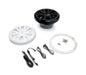 Includes a white and black removeable grill to compliment your ride. The IPX7 design includes a UV-stable basket and durable Santoprene rubber surrounds, the injection molded mineral- filled polypropylene sub cone is treated with UV inhibitors, and a moisture and tear resistant fiber blend spider.